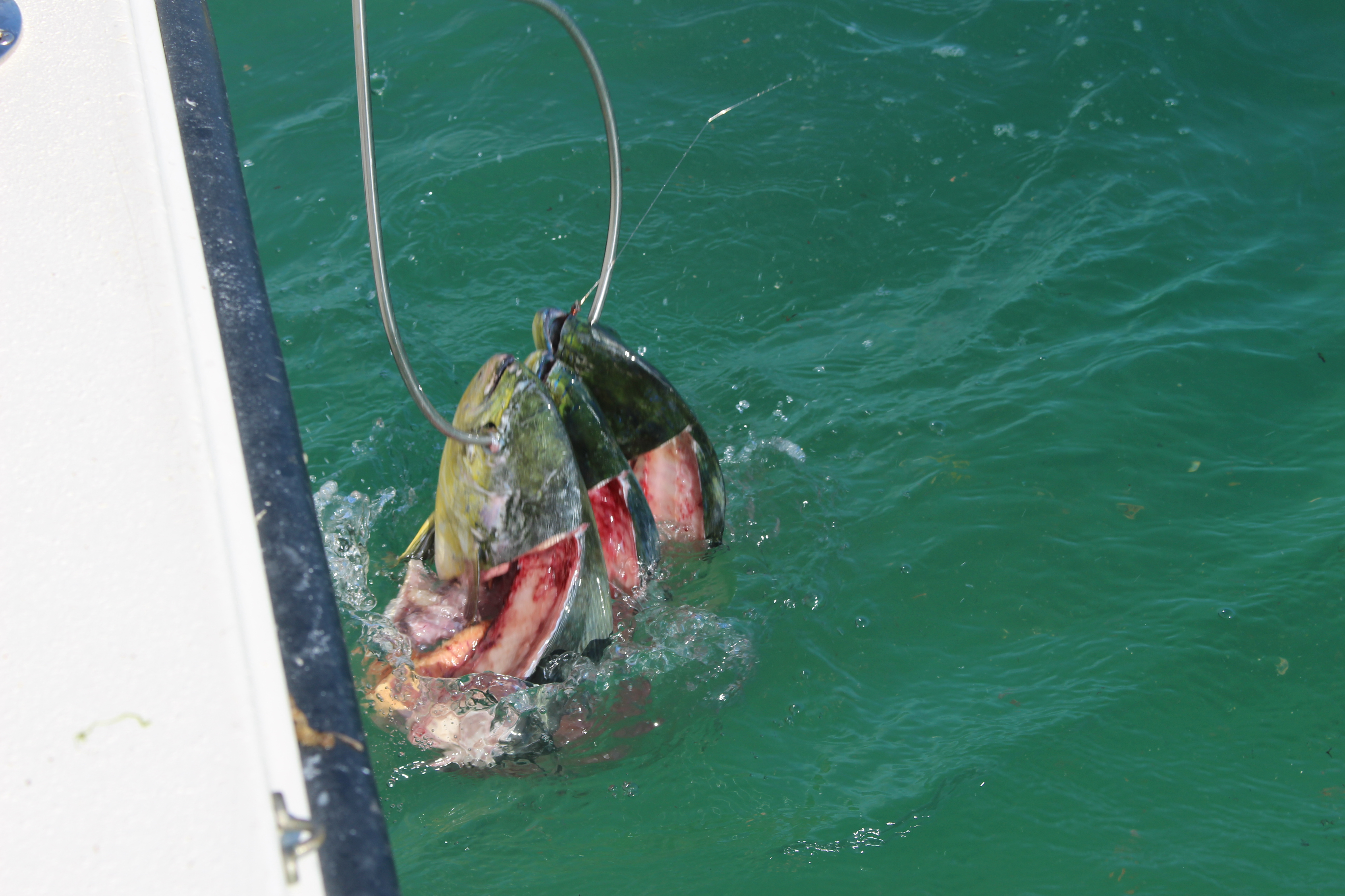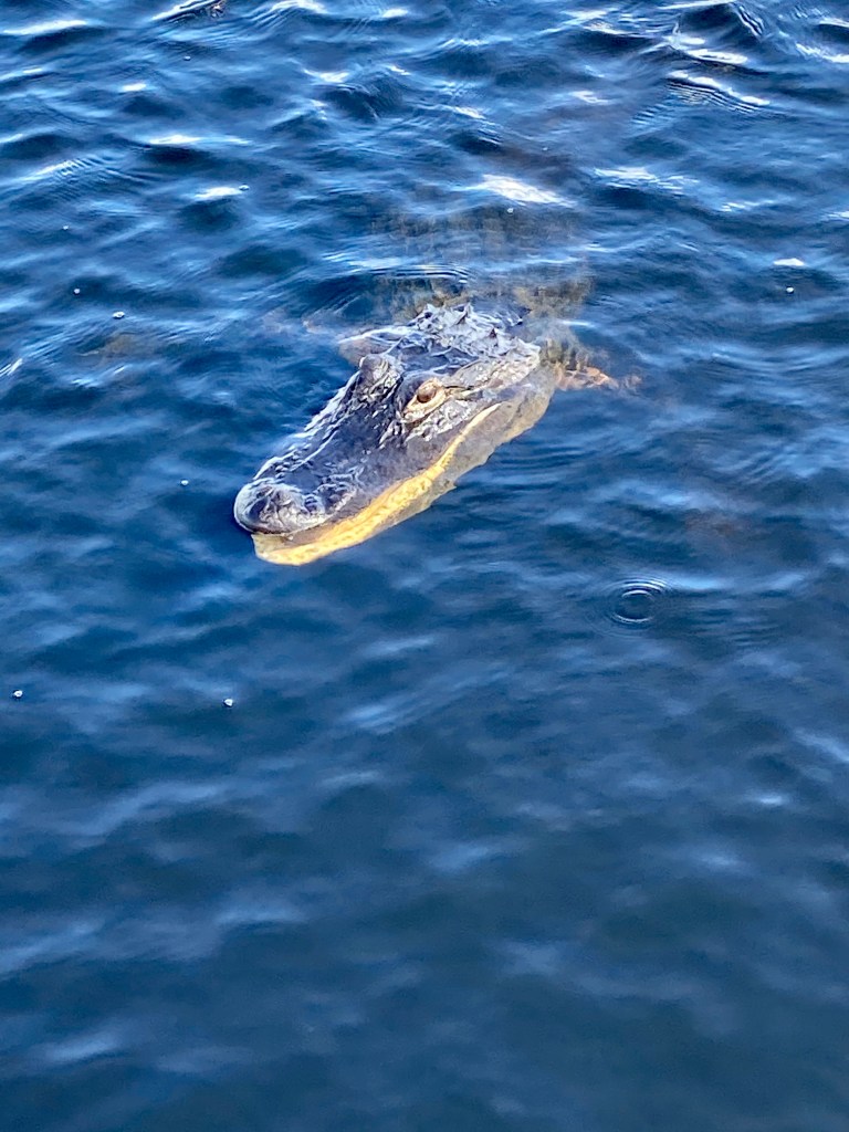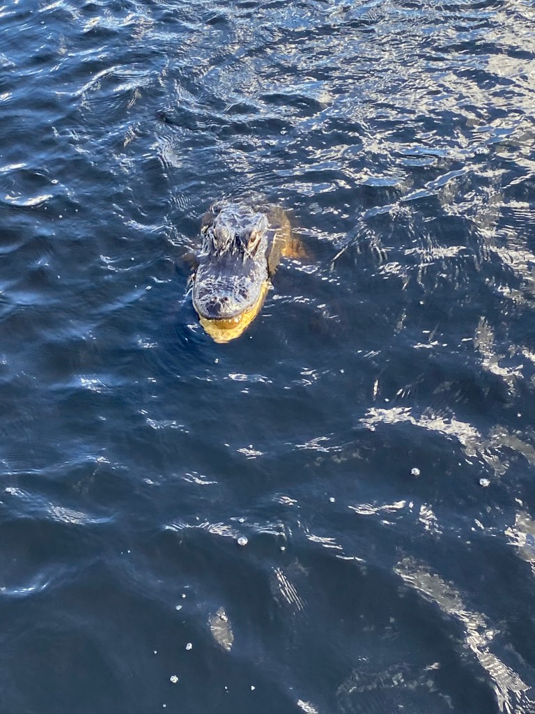 Never feed a gator, as you don’t want them associating humans as a food source. Also, if one is hooked (usually grabs your catch) try to get them to release it or cut the line. If you fight them to the boat, well, watch out!