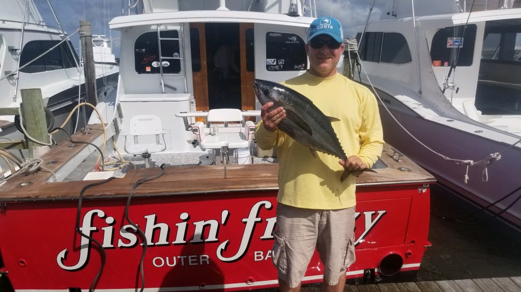 it was the 3rd day of a three day Outer Banks North Carolina (OBX) fishing trip with two marine buddies of mine. The first two days were awesome fishing, both inshore bay and offshore fishing where we caught mackerel, stripped bass, cobia, albacore and other species.