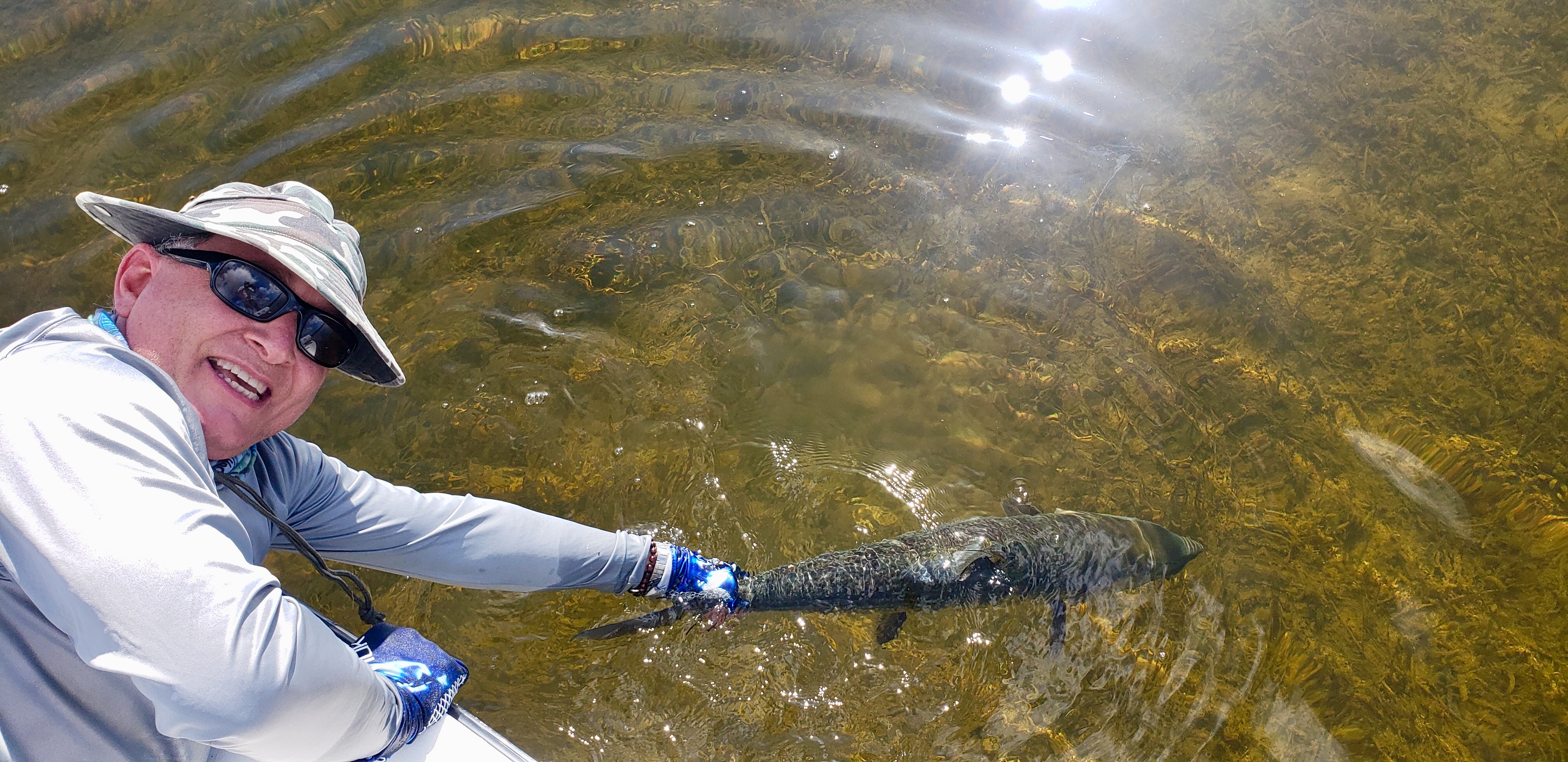 Bonefish are notoriously wary and great skill must be taken both in approach and presentation when fishing for them. noises from the boat or even the boat’s shadow can spook the fish. Trust me, I’ve scared more than one school of fish in excitement to get a cast off or dropping a water bottle!