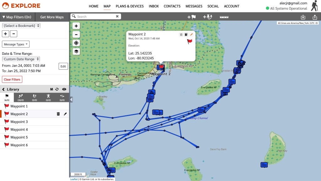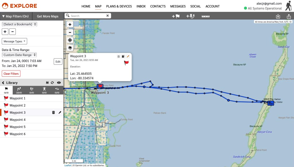 I use this on all my trips since I bought it in 2020. I pin waypoints to track back to my starting point, send realtime GPS coordinates and route updates to my emergency contacts, and have pre-programmed texts that are easy to send. I have field tested this several times in the Everglades as well as in Biscyane National Park and offshore fishing. When I start out I send a message with GPS coordinates linked to an interactive map that updates at 10 minute intervals with new datapoints.