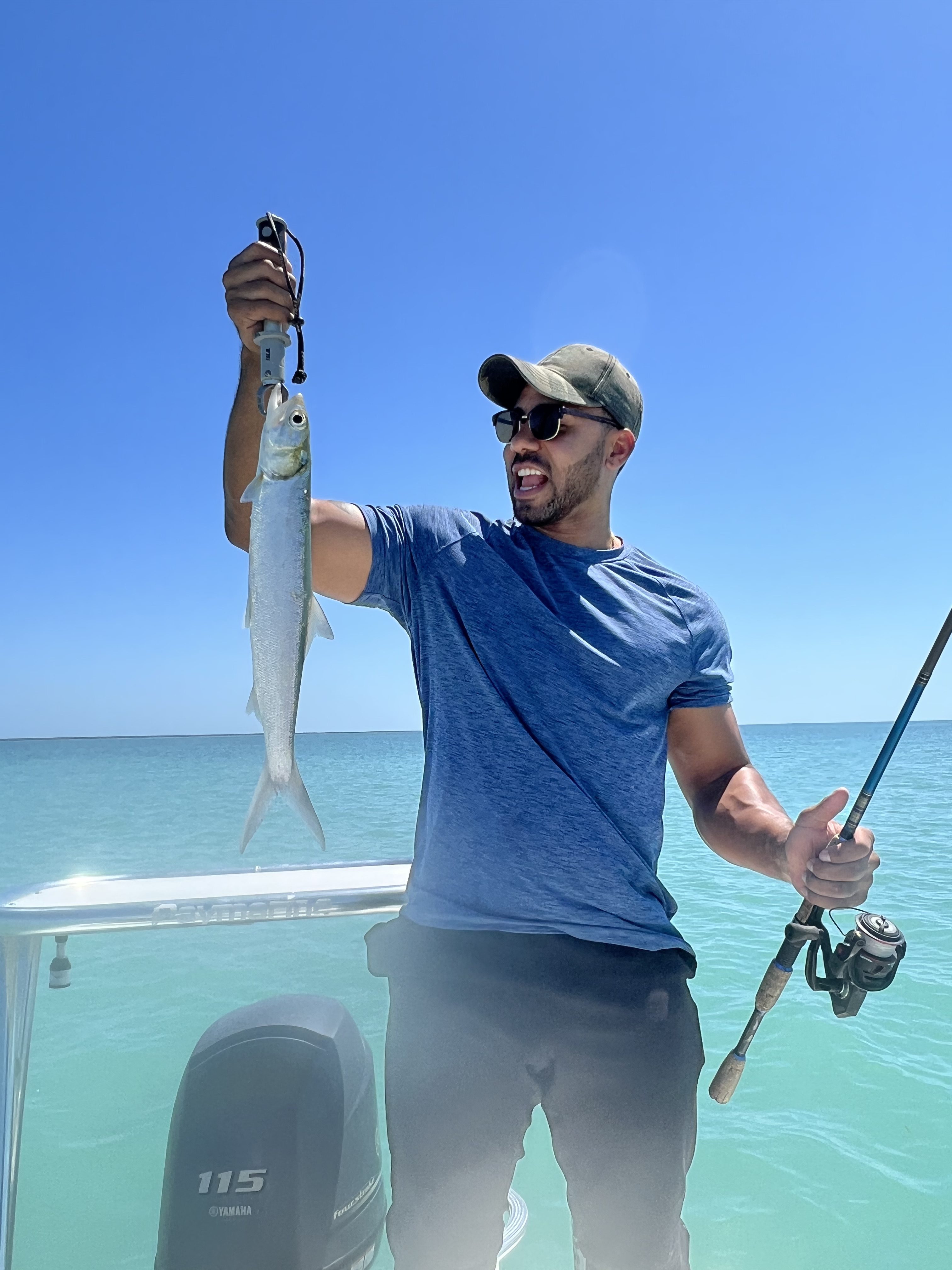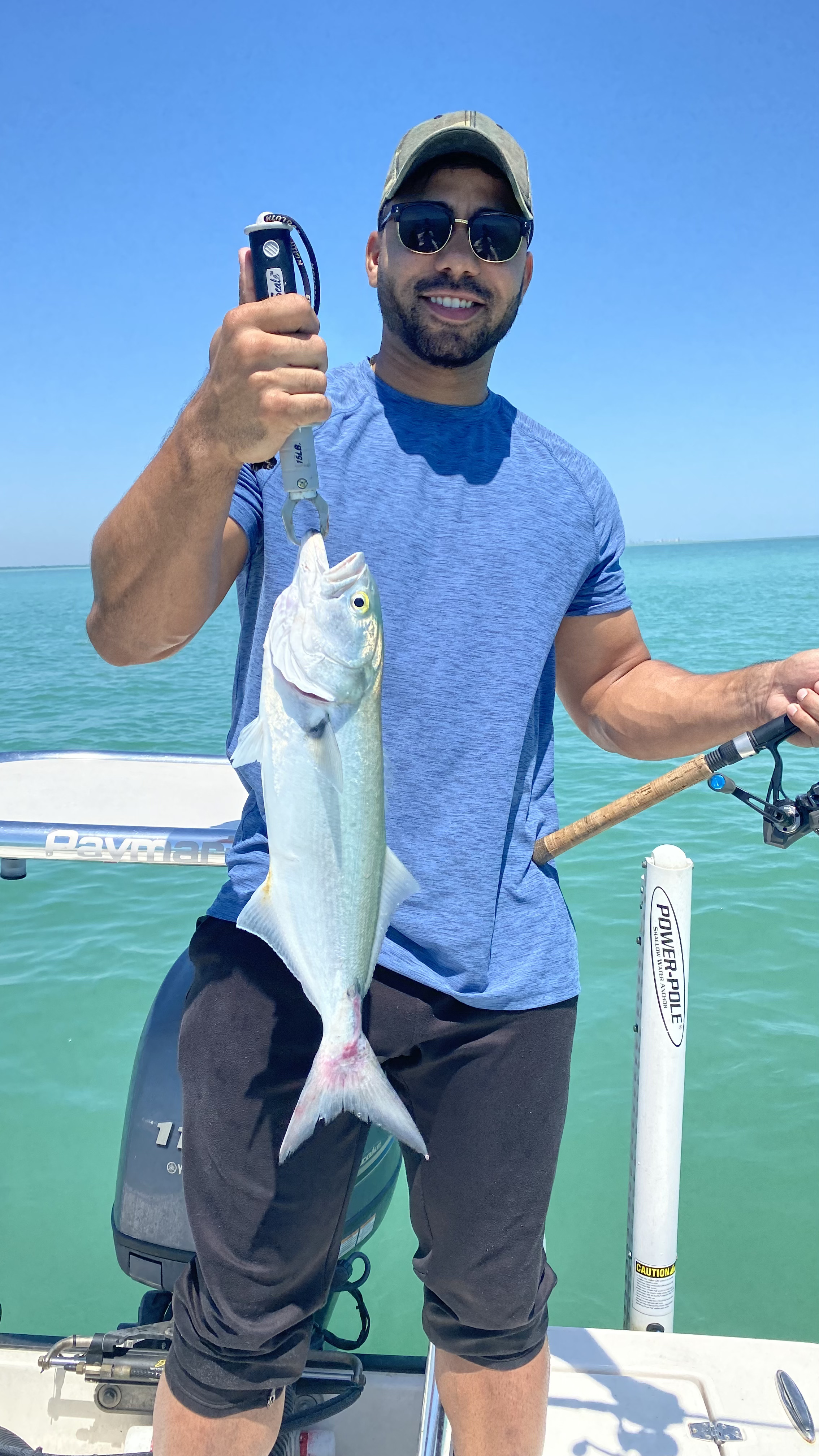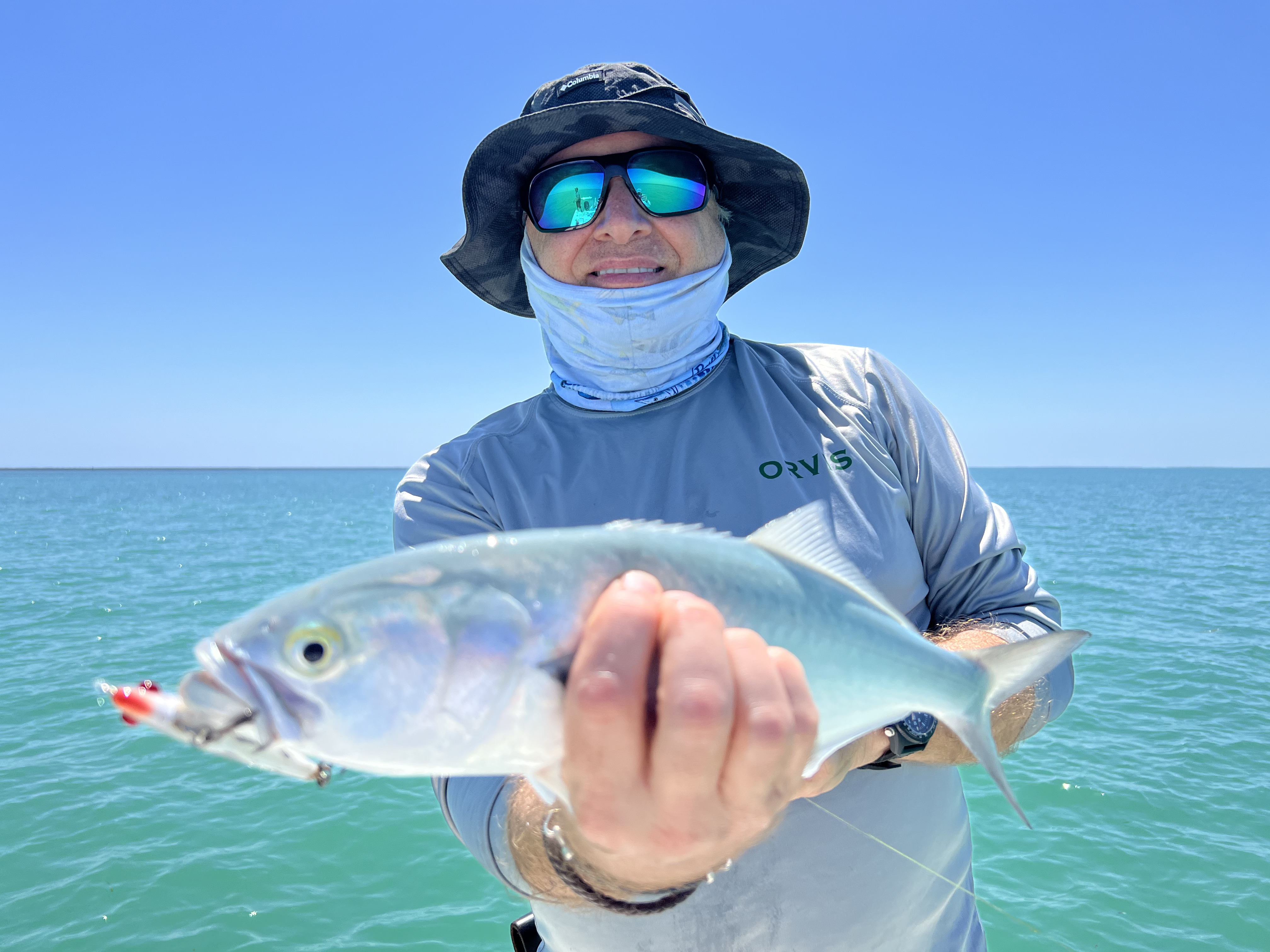 We had non-stop action with bluefish (all around 2 to 2.5 pounds), blue runners, ladyfish as well as a few other species from trigger fish to jacks. In all we lost count but we hit high double if not triple digits on the blue fish with multiple double hooks-ups. We also landed about 8-10 ladyfish, the poor man’s tarpon, and los an equal amount to their their huge jumps right at the boat.