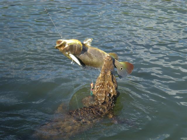 Here are a few pictures of predators taking their pound of flesh either from bait or the actual catch. All photos are mine, unless otherwise noted in the caption.
