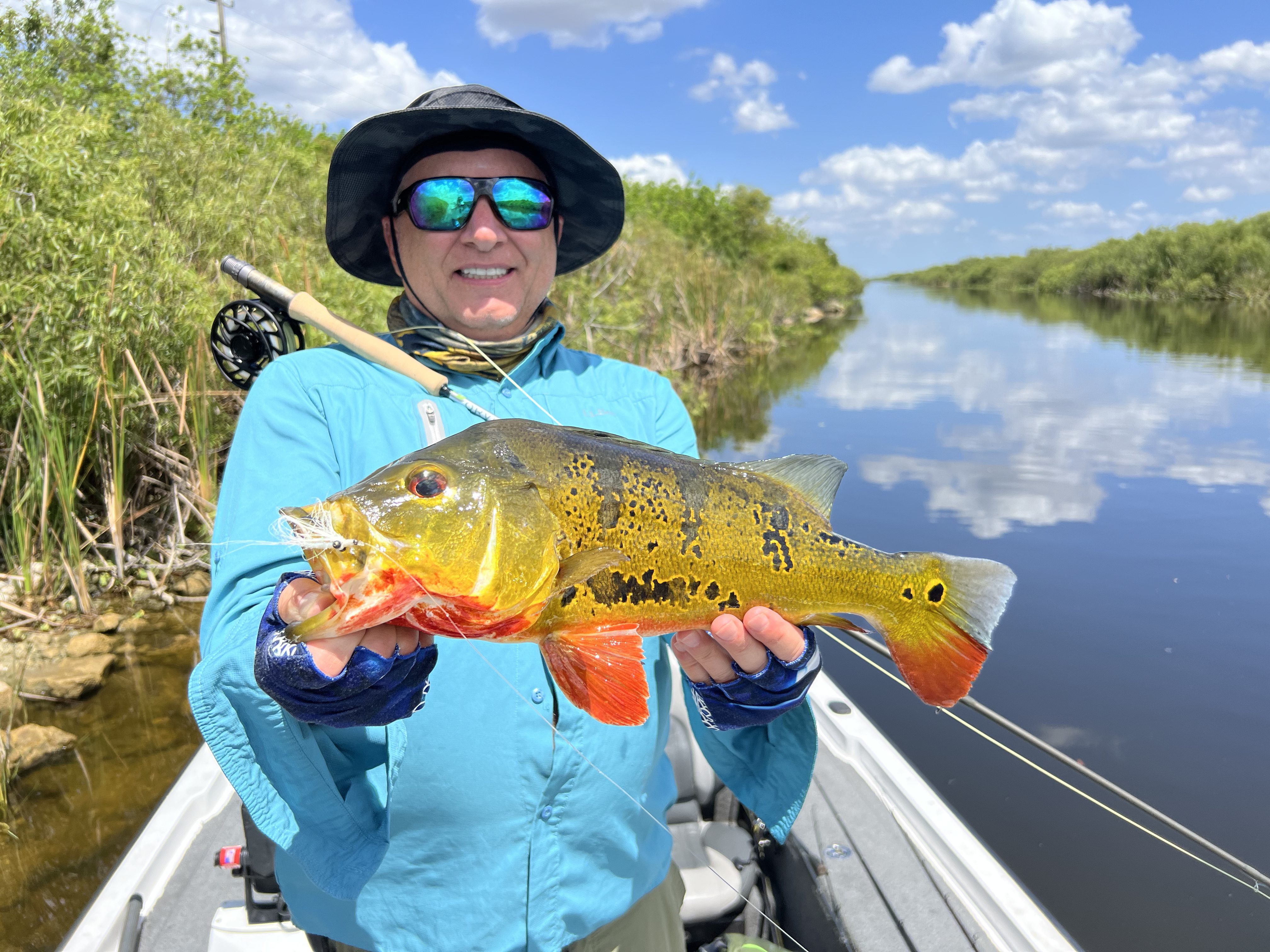 Just one of those days when the fishing gods smile down upon you with perfect weather and the fish cooperate. One of the better days for fly fishing and slammed the peacock bass as well as catching a few other exotics such as oscars, mayan cichlid and a first for me with a Jaguar Cichlid, a native of Central America.