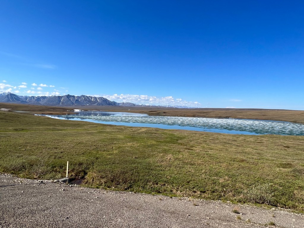 The University of Alaska runs their arctic and tundra research center at Toolik (68.62 N, 149.58 W). While it’s closed to the public the lake is open and offers great fishing for arctic grayling. The lake was half covered with ice in mid-June, the water was real cold and the views breathtaking.