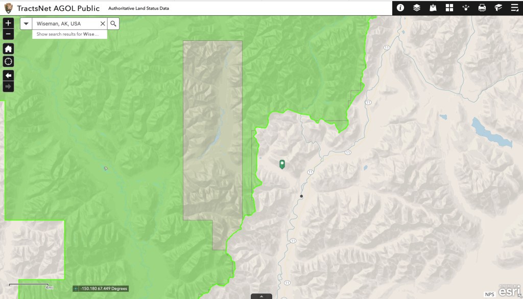 Outside of Wiseman, where I was staying as my Arctic basecamp, there is an abandoned mining road that leads to a trailhead that goes to the park. I found the road via google map searches and confirmed with the lodge owner at Wiseman that it goes where I thought it did.