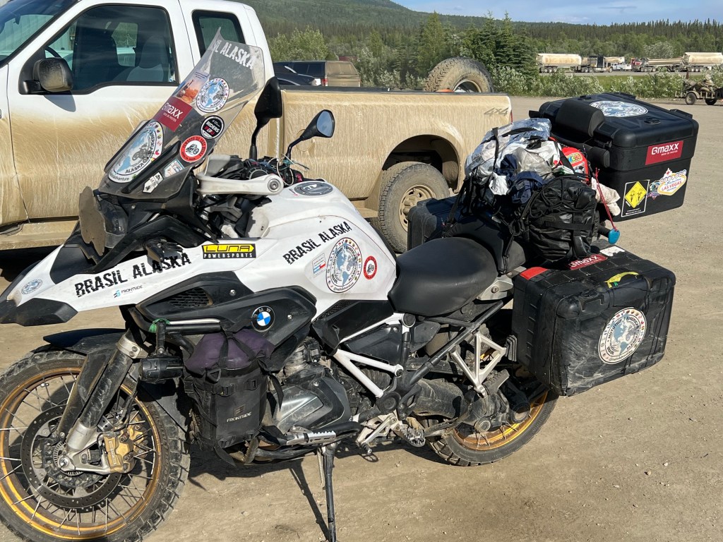 I saw this bike and took a few pictures to send to my Brazilian wife. Then the owner came out and he was a crazy Brazilian riding his bike from Brazil to Alaska. Spent about 20 minutes talking in Portuguese with him as his English was limited (so is my Portuguese). He was grateful to have someone to speak Portuguese with for a while.