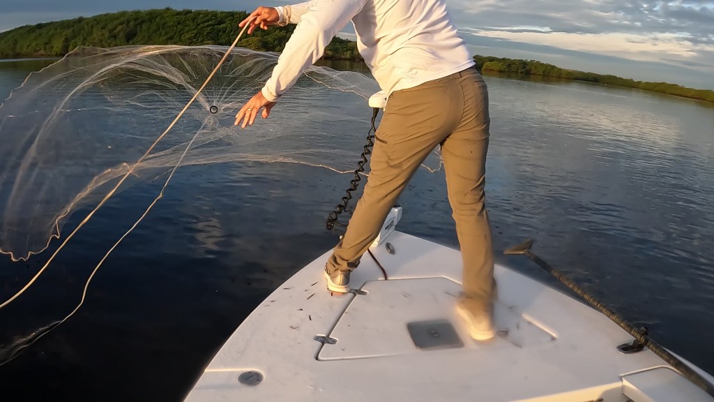 In the early morning light at the end of the outgoing tide, Capt. Mo of Miami bonefishing and I came upon a secluded area that was so thick with bait fish you could easily have walked across the bay. Each cast of the bait net was full of pilchards.