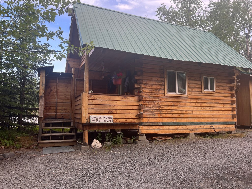 I stayed at a cabin at Cooper landing Fish Camp on the Kenai with full kitchen, but a separate building for bathroom and shower (which I didn’t know bout or didn’t read about). This set up made it interesting to go to the bathroom at night when it was cold and bears were around. I would have to get dressed and take my bear spray with me to use the facilities. While the bathroom had hot water, the walk back to cabin after a shower was cold.