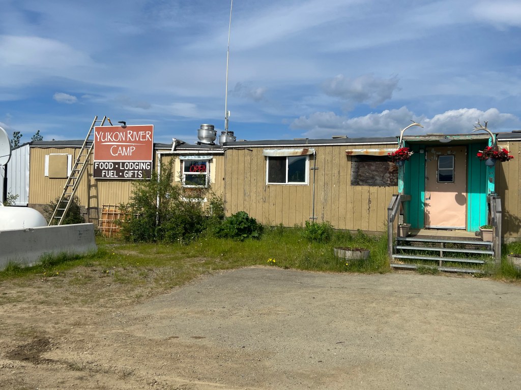 Either grab and go fast-food on the road, or homemade sandwiches while fishing. nothing fancy. Did stop for burgers at the Yukon River camp.
