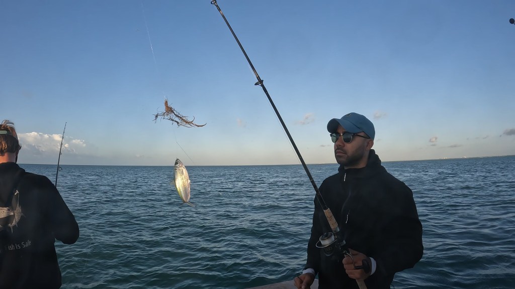 To start the trip, first we spent about an hour catching live bait. For this trip we were catching herrings and within an hour we had enough bait to head offshore.