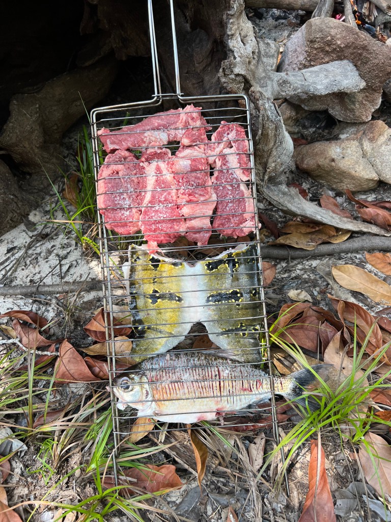Lunch mostly consisted of fresh caught fish such as pacu, piranha or Matrinxã as well as meat, rice, tomatoes and farofa (toasted yuca flour)